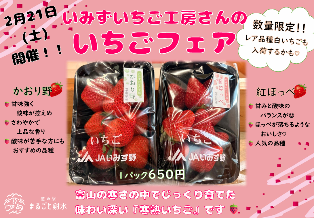 新湊で水揚げされた紅ズワイガニが今まさに旬の時期!いみずキッチンでは、カニの美味しさを存分に味わえる「カニわっぱ飯定食」をご提供中です。お腹を満たしたら、物産館へGO!富山自慢のお土産がずらりと並んでいます。冬の富山の味覚を、ぜひこの機会にお楽しみください♪