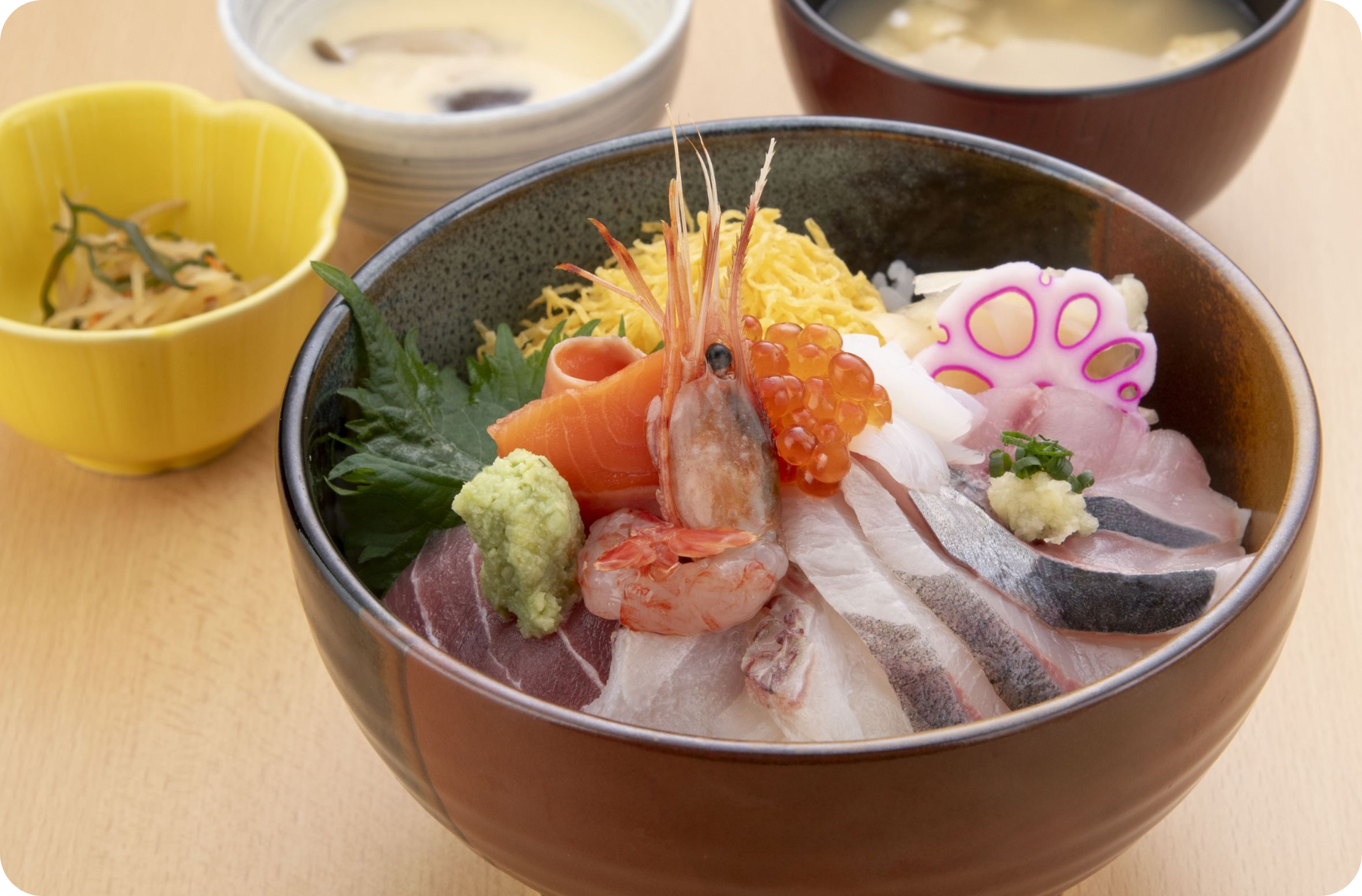 白エビやサクラマスなど富山湾の海の幸を使った丼物、麺類、カレーなど豊富なメニューをご用意しております。