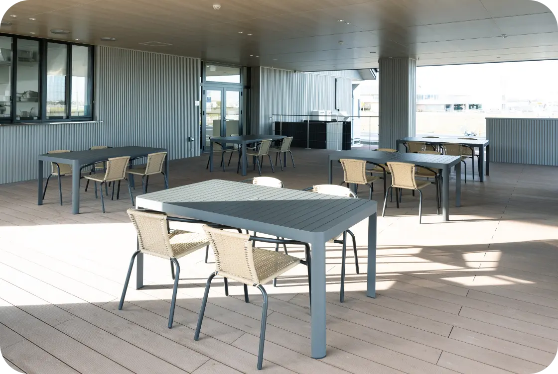 開放感あふれるテラス席でお食事やお茶をお楽しみいただけます。ペット同伴も可能ですので、ご家族みんなでどうぞ。