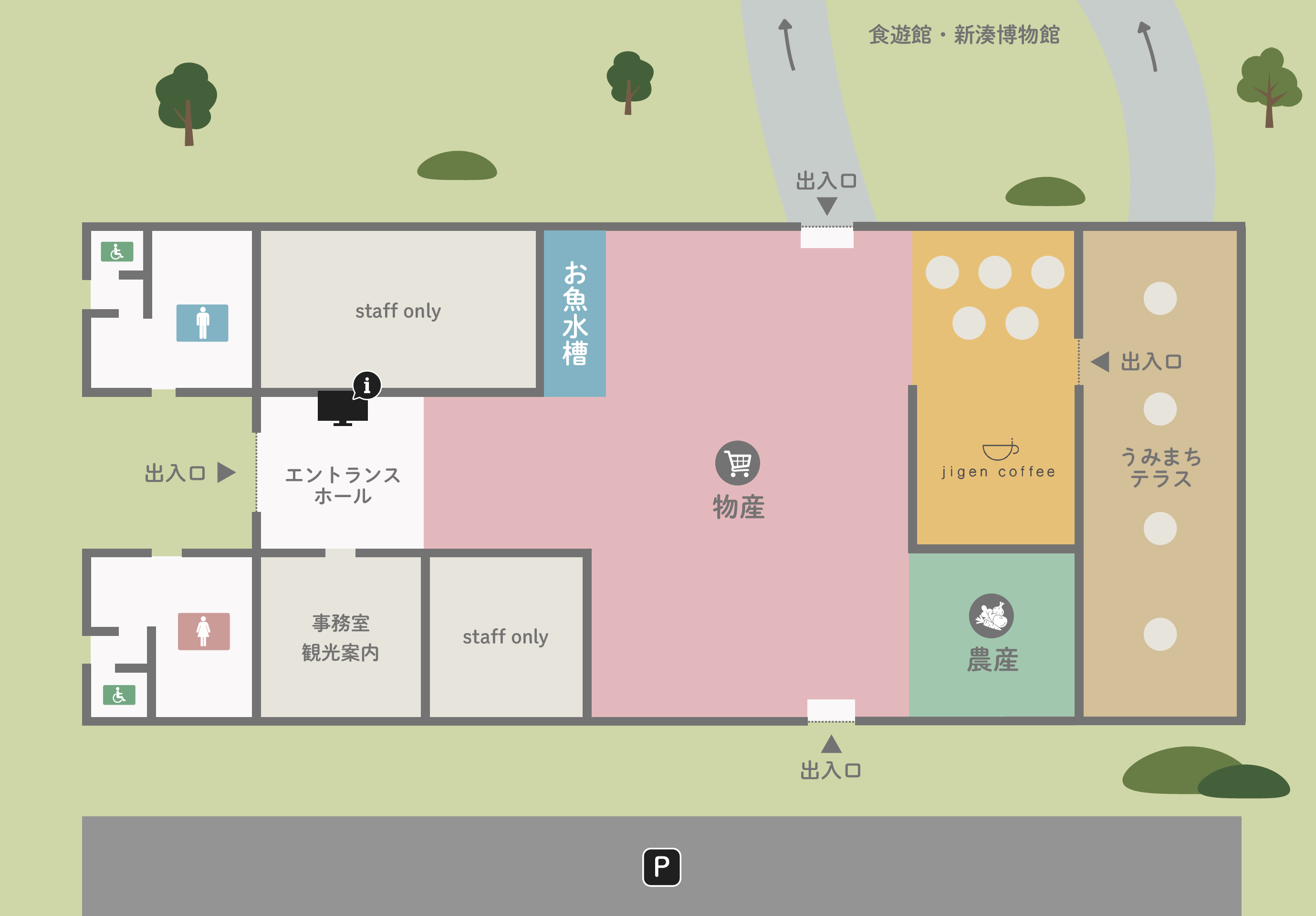- 物産館 211台 (普通車161台、障害者等用6台、大型バス44台 EV充電施設1台)