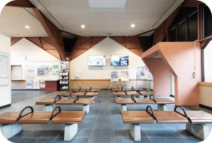 富山県内の道路情報をリアルタイムで確認できます。24時間開放の休憩スペースとトイレを完備し、いつでもご利用いただけます。