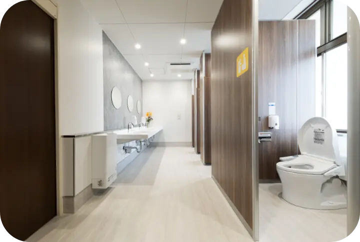 清潔で快適なトイレを完備しております。どなたでも安心してご利用いただけます。